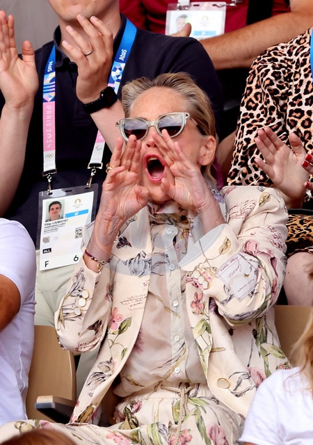 Sharon Stone - Célébrités assistent à la victoire de Novak Djokovic face à Carlos Alcaraz lors de la finale de tennis des Jeux Olympiques de Paris 2024 (JO) sur le cour Philippe Chatrier à Roland Garros, à Paris, France, le 4 Aout 2024. © Jacovides-Perusseau/Bestimage Celebrities attend Novak Djokovic's victory over Carlos Alcaraz in the Paris 2024 Olympic Games (Olympics) tennis final on Philippe Chatrier Court at Roland Garros in Paris, France, August 4, 2024.