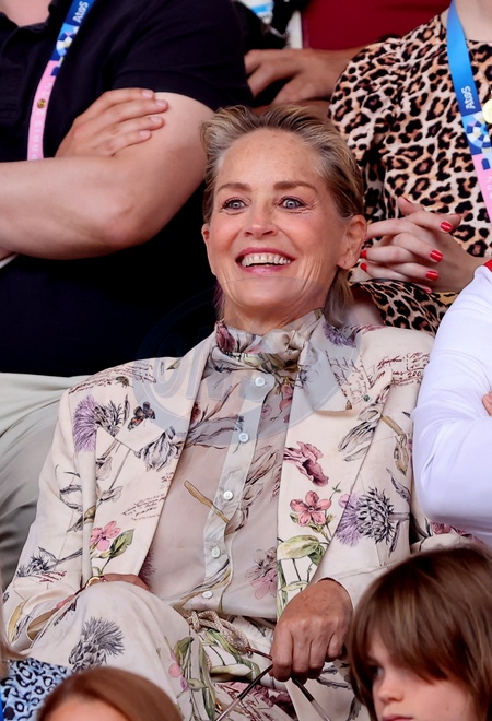 Sharon Stone - Célébrités assistent à la victoire de Novak Djokovic face à Carlos Alcaraz lors de la finale de tennis des Jeux Olympiques de Paris 2024 (JO) sur le cour Philippe Chatrier à Roland Garros, à Paris, France, le 4 Aout 2024. © Jacovides-Perusseau/Bestimage Celebrities attend Novak Djokovic's victory over Carlos Alcaraz in the Paris 2024 Olympic Games (Olympics) tennis final on Philippe Chatrier Court at Roland Garros in Paris, France, August 4, 2024.