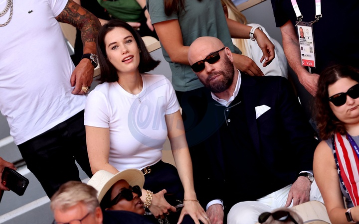 John Travolta et sa fille Ella Bleu - Célébrités assistent à la victoire de Novak Djokovic face à Carlos Alcaraz lors de la finale de tennis des Jeux Olympiques de Paris 2024 (JO) sur le cour Philippe Chatrier à Roland Garros, à Paris, France, le 4 Aout 2024. © Jacovides-Perusseau/Bestimage Celebrities attend Novak Djokovic's victory over Carlos Alcaraz in the Paris 2024 Olympic Games (Olympics) tennis final on Philippe Chatrier Court at Roland Garros in Paris, France, August 4, 2024.
