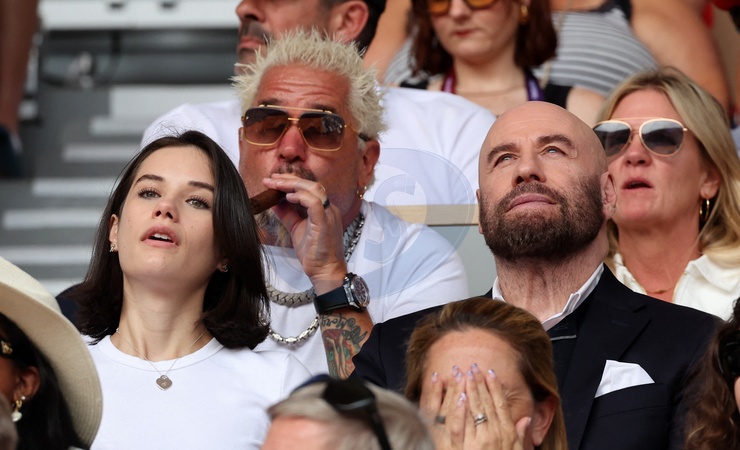 John Travolta et sa fille Ella Bleu - Célébrités assistent à la victoire de Novak Djokovic face à Carlos Alcaraz lors de la finale de tennis des Jeux Olympiques de Paris 2024 (JO) sur le cour Philippe Chatrier à Roland Garros, à Paris, France, le 4 Aout 2024. © Jacovides-Perusseau/Bestimage Celebrities attend Novak Djokovic's victory over Carlos Alcaraz in the Paris 2024 Olympic Games (Olympics) tennis final on Philippe Chatrier Court at Roland Garros in Paris, France, August 4, 2024.