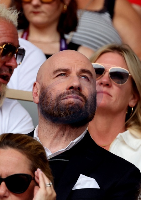 John Travolta - Célébrités assistent à la victoire de Novak Djokovic face à Carlos Alcaraz lors de la finale de tennis des Jeux Olympiques de Paris 2024 (JO) sur le cour Philippe Chatrier à Roland Garros, à Paris, France, le 4 Aout 2024. © Jacovides-Perusseau/Bestimage Celebrities attend Novak Djokovic's victory over Carlos Alcaraz in the Paris 2024 Olympic Games (Olympics) tennis final on Philippe Chatrier Court at Roland Garros in Paris, France, August 4, 2024.