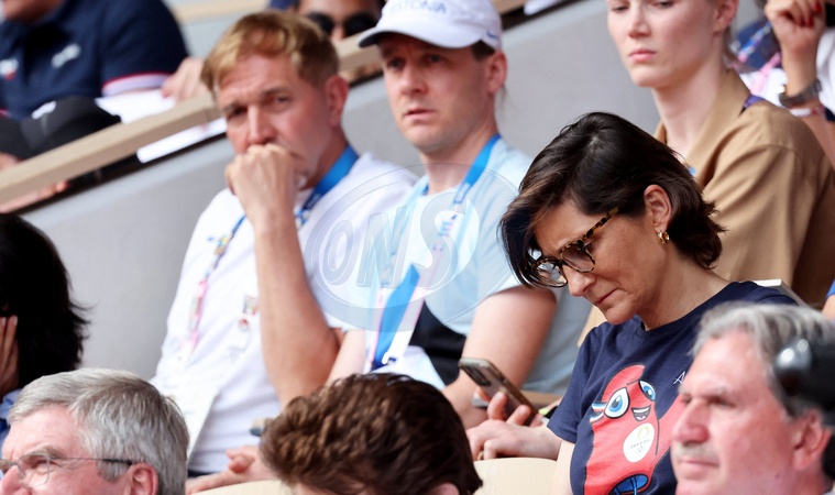 Amélie Oudéa-Castéra - Célébrités assistent à la victoire de Novak Djokovic face à Carlos Alcaraz lors de la finale de tennis des Jeux Olympiques de Paris 2024 (JO) sur le cour Philippe Chatrier à Roland Garros, à Paris, France, le 4 Aout 2024. © Jacovides-Perusseau/Bestimage Celebrities attend Novak Djokovic's victory over Carlos Alcaraz in the Paris 2024 Olympic Games (Olympics) tennis final on Philippe Chatrier Court at Roland Garros in Paris, France, August 4, 2024.