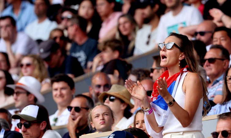 Jelena Djokovik - Célébrités assistent à la victoire de Novak Djokovic face à Carlos Alcaraz lors de la finale de tennis des Jeux Olympiques de Paris 2024 (JO) sur le cour Philippe Chatrier à Roland Garros, à Paris, France, le 4 Aout 2024. © Jacovides-Perusseau/Bestimage Celebrities attend Novak Djokovic's victory over Carlos Alcaraz in the Paris 2024 Olympic Games (Olympics) tennis final on Philippe Chatrier Court at Roland Garros in Paris, France, August 4, 2024.