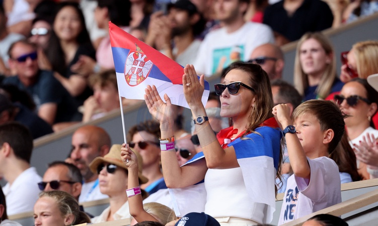 Jelena Djokovik - Célébrités assistent à la victoire de Novak Djokovic face à Carlos Alcaraz lors de la finale de tennis des Jeux Olympiques de Paris 2024 (JO) sur le cour Philippe Chatrier à Roland Garros, à Paris, France, le 4 Aout 2024. © Jacovides-Perusseau/Bestimage Celebrities attend Novak Djokovic's victory over Carlos Alcaraz in the Paris 2024 Olympic Games (Olympics) tennis final on Philippe Chatrier Court at Roland Garros in Paris, France, August 4, 2024.