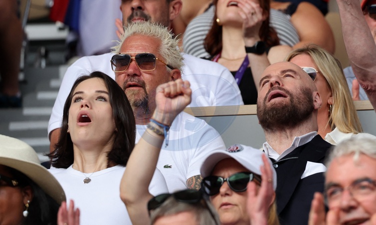 John Travolta et sa fille Ella Bleue - Célébrités assistent à la victoire de Novak Djokovic face à Carlos Alcaraz lors de la finale de tennis des Jeux Olympiques de Paris 2024 (JO) sur le cour Philippe Chatrier à Roland Garros, à Paris, France, le 4 Aout 2024. © Jacovides-Perusseau/Bestimage Celebrities attend Novak Djokovic's victory over Carlos Alcaraz in the Paris 2024 Olympic Games (Olympics) tennis final on Philippe Chatrier Court at Roland Garros in Paris, France, August 4, 2024.