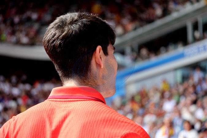Carlos Alcaraz - Célébrités assistent à la victoire de Novak Djokovic face à Carlos Alcaraz lors de la finale de tennis des Jeux Olympiques de Paris 2024 (JO) sur le cour Philippe Chatrier à Roland Garros, à Paris, France, le 4 Aout 2024. © Jacovides-Perusseau/Bestimage Celebrities attend Novak Djokovic's victory over Carlos Alcaraz in the Paris 2024 Olympic Games (Olympics) tennis final on Philippe Chatrier Court at Roland Garros in Paris, France, August 4, 2024.