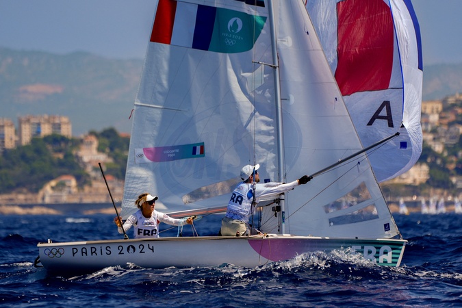 Camille Lecointre and Jeremie Mion (France) during the Mixed's Dinghy race at Olympic Games Paris 2024. © Norbert Scanella / Dppi / Panoramic / Bestimage