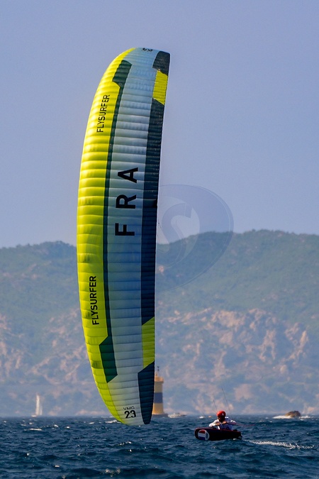 Axel Mazella (France) during the men's Kite race at Olympic Games Paris 2024. © Norbert Scanella / Dppi / Panoramic / Bestimage