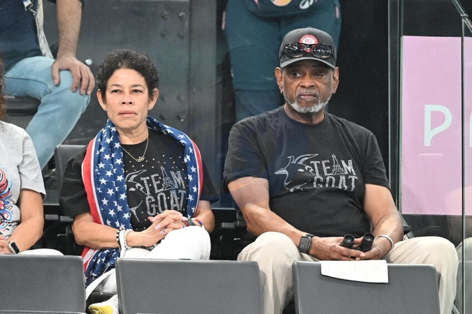 Nellie et Ronald Biles (parents de Simone Biles) - Célébrités assistent aux épreuves de gymnastique lors des Jeux Olympiques de Paris2024 (JO) le 5 aout 2024. © Perusseau-Jacovides/Bestimage Celebrities attend the gymnastics events during the Paris 2024 Summer Olympics (Olympic Games) on August 5, 2024.
