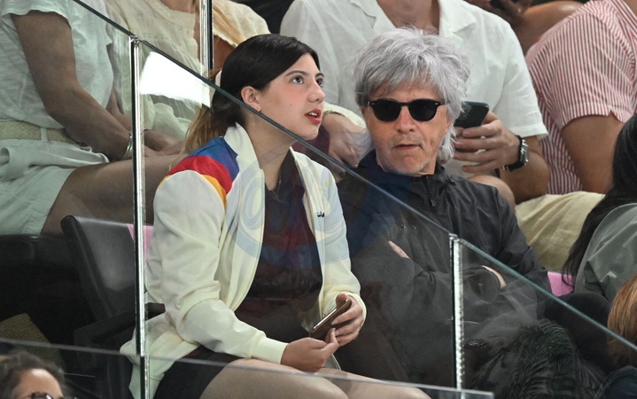 Nicola Sirkis et sa fille Théa - Célébrités assistent aux épreuves de gymnastique lors des Jeux Olympiques de Paris2024 (JO) le 5 aout 2024. © Perusseau-Jacovides/Bestimage Celebrities attend the gymnastics events during the Paris 2024 Summer Olympics (Olympic Games) on August 5, 2024.