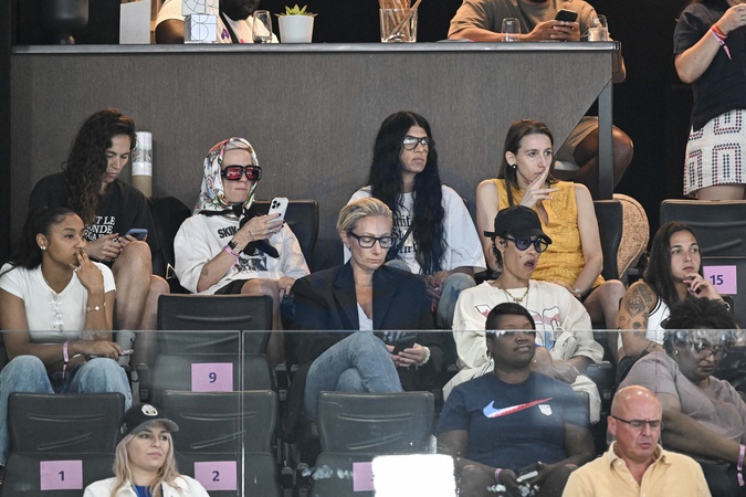 Megan Rapinoe et sa compagne Sue Bird - Les célébrités assistent aux épreuves de gymnastique lors des Jeux Olympiques de Paris2024 (JO), le 5 août 2024. © Jacovides-Perusseau / Bestimage Celebrities attend the gymnastics events during the Paris 2024 Summer Olympics (Olympic Games) on August 5, 2024.