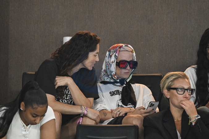 Megan Rapinoe et sa compagne Sue Bird - Les célébrités assistent aux épreuves de gymnastique lors des Jeux Olympiques de Paris2024 (JO), le 5 août 2024. © Jacovides-Perusseau / Bestimage Celebrities attend the gymnastics events during the Paris 2024 Summer Olympics (Olympic Games) on August 5, 2024.