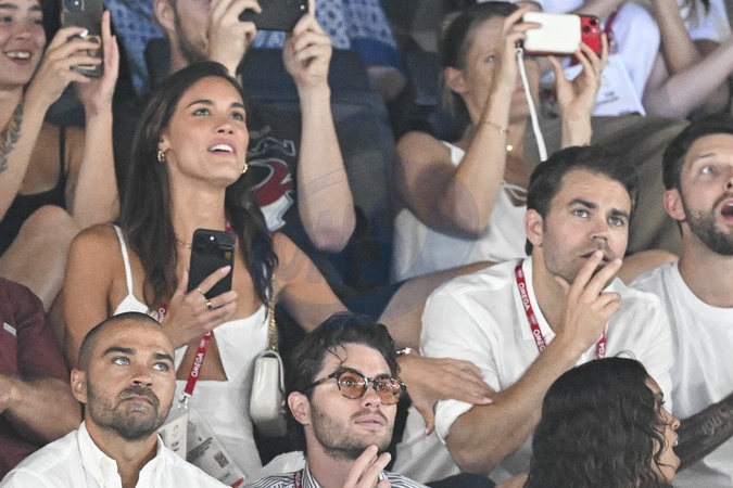 Jesse Williams, Chase Stokes, Paul Wesley et sa compagne Natalie Kuckenburg - Les célébrités assistent aux épreuves de gymnastique lors des Jeux Olympiques de Paris2024 (JO), le 5 août 2024. © Jacovides-Perusseau / Bestimage Celebrities attend the gymnastics events during the Paris 2024 Summer Olympics (Olympic Games) on August 5, 2024.