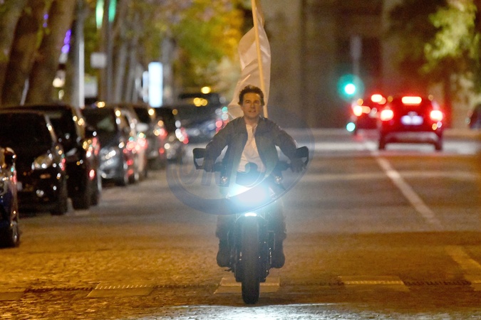 Exclusif - Prix Spécial - No Web - Tom Cruise tourne une scène en moto pour le film "Mission : Impossible 8" dans les rues de Paris