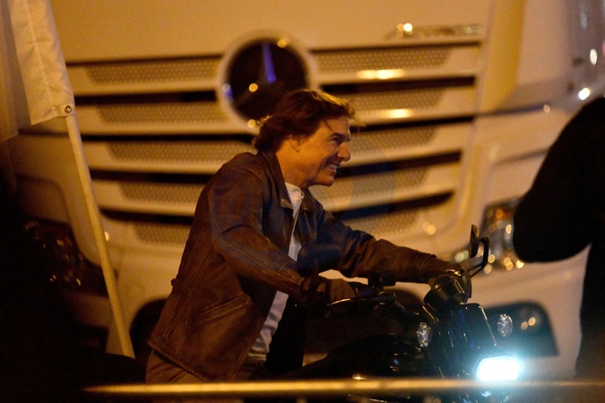Exclusif - Prix Spécial - No Web - Tom Cruise tourne une scène en moto pour le film "Mission : Impossible 8" dans les rues de Paris