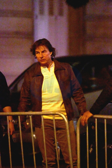 Exclusif - Prix Spécial - No Web - Tom Cruise tourne une scène en moto pour le film "Mission : Impossible 8" dans les rues de Paris