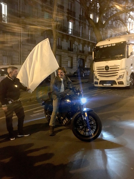 Exclusif - Prix Spécial - No Web - Tom Cruise tourne-t-il une scène en moto pour le film "Mission : Impossible 8" ou bien s'agit-il plutôt d'une séquence pour la cérémonie de clôture des Jeux Olympiques 2024 (JO2024) comme le suggère certains médias au pied de l'Arc de Triomphe à Paris le 25 avril 2024. Réponse dimanche 11 août 2024. Exclusive - Special Price - No Web - Is Tom Cruise shooting a scene on a motorbike for the film "Mission: Impossible 8" or is it rather a sequence for the closing ceremony of the 2024 Olympic Games (2024 Olympic Games) as suggests some media at the foot of the Arc de Triomphe in Paris on April 25, 2024. Wait sunday 11th August to know it.