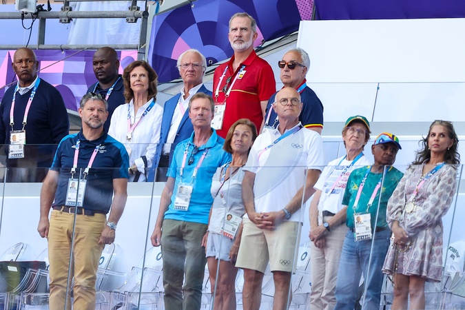 Król Karol XVI Gustaw, królowa Sylwia, król Felipe VI, księżniczka Catharina-Amalia i wielki książę Henryk Luksemburga biorą udział w zawodach lekkoatletycznych podczas Igrzysk Olimpijskich w Paryżu w 2024 r. (OG) na Stade France