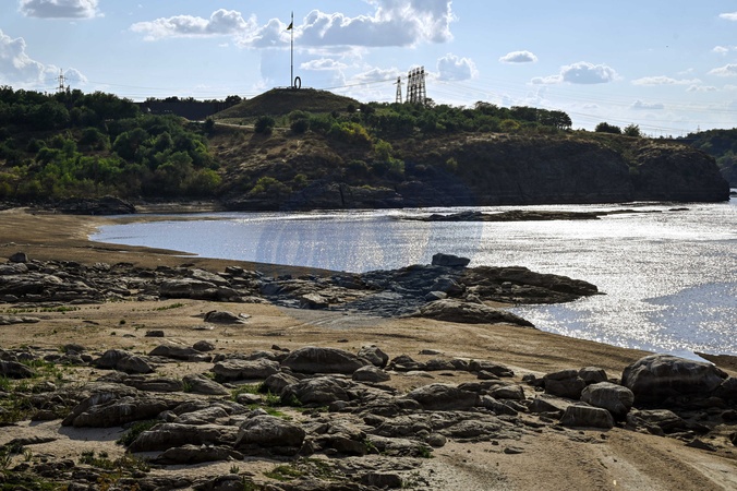 ZAPORIZHZHIA, UKRAINE - JULY 31, 2024 - A rocky bank of the Dnipro River as the water level dropped after Russian invaders set off the Kakhovka Dam on 6 June 2023, Zaporizhzhia, southeastern Ukraine., Credit:Dmytro Smolienko / Avalon