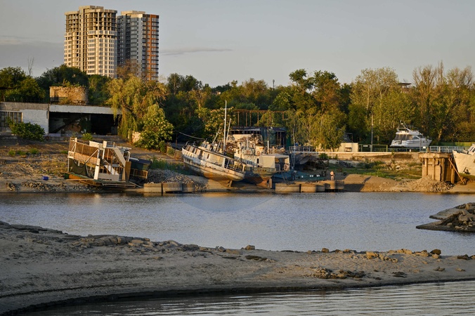 ZAPORIZHZHIA, UKRAINE - JULY 31, 2024 - Vessels are on the bank of the Dnipro River as the water level dropped after Russian invaders set off the Kakhovka Dam on 6 June 2023, Zaporizhzhia, southeastern Ukraine., Credit:Dmytro Smolienko / Avalon