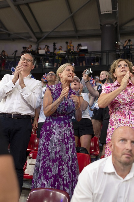 La duchesse Sophie d'Edimbourg assiste à la victoire des britanniques à la finale du sprint par équipes féminin sur piste en cyclisme lors des Jeux Olympiques (JO) de Paris 2024 au Vélodrome National à Saint-Quentin-en-Yvelines, France, le 5 août 2024. © Jacovides-Perusseau/Bestimage Sophie, Duchess of Edinburgh, attending the Cycling Track Women's Team Sprint Finals on Day 10 of the Olympic Games Paris 2024 at National Velodrome on August 5, 2024 in Saint-Quentin-en-Yvelines, France.