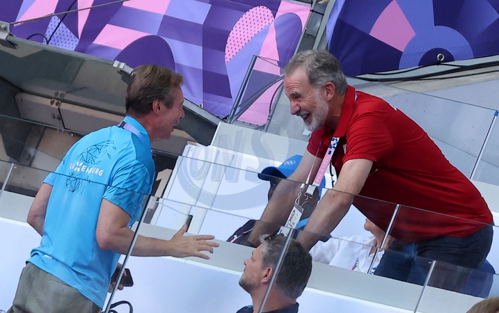Le roi Felipe VI d'Espagne et le grand-duc Henri de Luxembourg assistent aux épreuves d'athlétisme lors des Jeux Olympiques de Paris 2024 (JO) au Stade France, à Saint-Denis, France, le 5 août 2024. © Jacovides-Perusseau/bestimage King Felipe VI and Grand Duke Henri of Luxembourg attend the athletics events during the Paris 2024 Olympic Games (Olympics) at Stade France, in Saint-Denis, France, on August 5, 2024.
