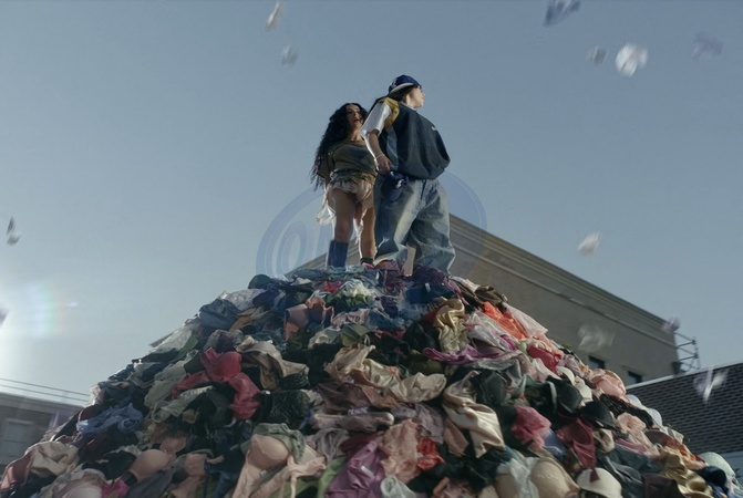 Pictures must credit:Charli XCX Music stars Charli XCX and Billie Eilish end up on top of a mountain of women's underwear in a bizarre new video. The song Guess lyric includes the line "You wanna guess the colour of my underwear ?” In the promotional film, British born Charli ,32, and American Eilish, 22, climb a mountain of lingerie. But that is only after Eilish gatecrashes a wild party hosted by Charli in a bulldozer which crashes through the wall. Guests at the bash are seen ripping off their underwear off through their clothes. When the two stars go outside, the panties and bras litter the street leading to the giant mount. The song is a remix fromCharli'salbum Brat released in July. Eilish's brother and collaborator Finneas ,27, said in a recent interview the collaboration came after he and Billie we were watching her music videos together. They texted her and she incited them to appear on the song. Picture supplied by JLPPA