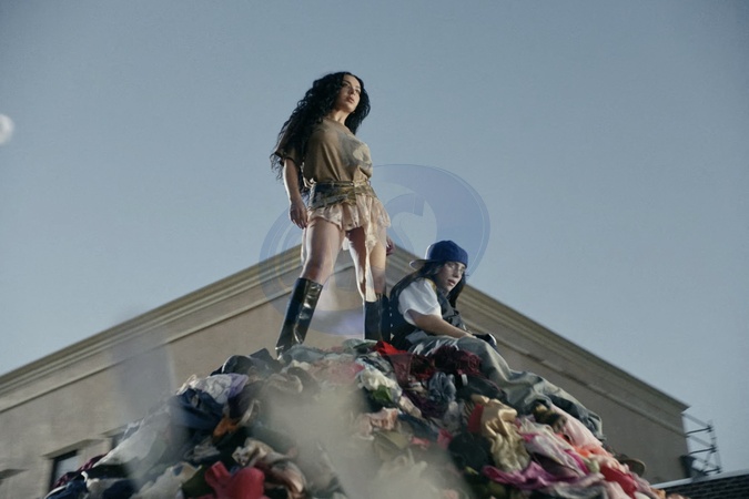 Pictures must credit:Charli XCX Music stars Charli XCX and Billie Eilish end up on top of a mountain of women's underwear in a bizarre new video. The song Guess lyric includes the line "You wanna guess the colour of my underwear ?” In the promotional film, British born Charli ,32, and American Eilish, 22, climb a mountain of lingerie. But that is only after Eilish gatecrashes a wild party hosted by Charli in a bulldozer which crashes through the wall. Guests at the bash are seen ripping off their underwear off through their clothes. When the two stars go outside, the panties and bras litter the street leading to the giant mount. The song is a remix fromCharli'salbum Brat released in July. Eilish's brother and collaborator Finneas ,27, said in a recent interview the collaboration came after he and Billie we were watching her music videos together. They texted her and she incited them to appear on the song. Picture supplied by JLPPA