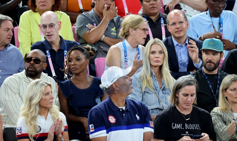 Célébrités assistent au match de basket entre les Etats-Unis et le Brésil (122-87) lors des Jeux Olympiques de Paris2024 (JO)