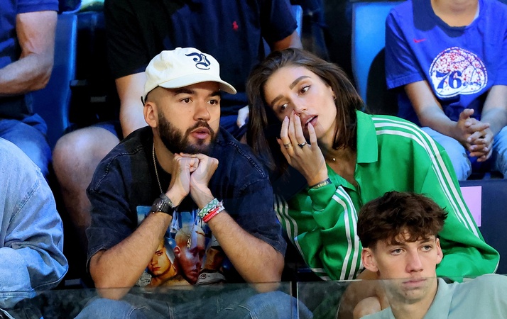 Oli et sa compagne - Les célébrités assistent à la victoire de l'équipe des USA de basket face au Brésil (122-87) lors des Jeux Olympiques de Paris2024, le 6 août 2024. © Jacovides-Perusseau / Bestimage Celebrities attend the victory of the US basketball team against Brésil (122-87) during the Paris 2024 Olympic Games, on August 6, 2024.