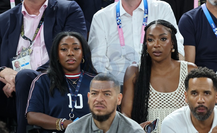 Célébrités assistent au match de basket entre les Etats-Unis et le Brésil (122-87) lors des Jeux Olympiques de Paris2024 (JO)
