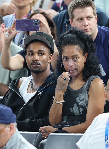 Célébrités assistent au match de basket entre les Etats-Unis et le Brésil (122-87) lors des Jeux Olympiques de Paris2024 (JO)