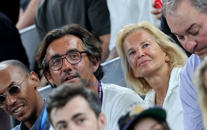 Iris Knobloch et son compagnon François Bréavoine - Les célébrités assistent à la victoire de l'équipe des USA de basket face au Brésil (122-87) lors des Jeux Olympiques de Paris2024, le 6 août 2024. © Jacovides-Perusseau / Bestimage Celebrities attend the victory of the US basketball team against Brésil (122-87) during the Paris 2024 Olympic Games, on August 6, 2024.
