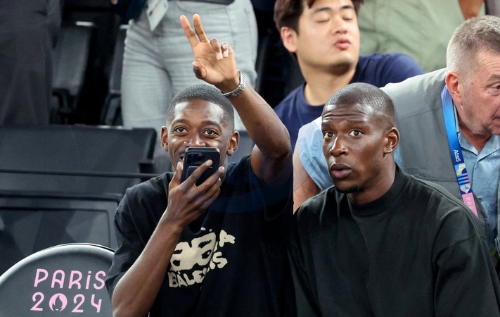 Ousmane Dembélé, Nordi Mukiele - Les célébrités assistent à la victoire de l'équipe des USA de basket face au Brésil (122-87) lors des Jeux Olympiques de Paris2024, le 6 août 2024. © Jacovides-Perusseau / Bestimage Celebrities attend the victory of the US basketball team against Brésil (122-87) during the Paris 2024 Olympic Games, on August 6, 2024.