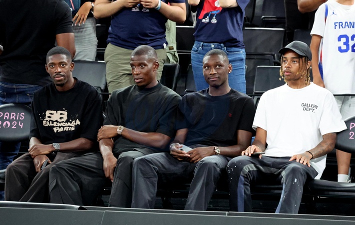 Ousmane Dembélé, Nordi Mukiele, Randal Kolo Muani, Bradley Barcola - Les célébrités assistent à la victoire de l'équipe des USA de basket face au Brésil (122-87) lors des Jeux Olympiques de Paris2024, le 6 août 2024. © Jacovides-Perusseau / Bestimage Celebrities attend the victory of the US basketball team against Brésil (122-87) during the Paris 2024 Olympic Games, on August 6, 2024.