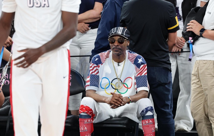 Snoop Dogg - Les célébrités assistent à la victoire de l'équipe des USA de basket face au Brésil (122-87) lors des Jeux Olympiques de Paris2024, le 6 août 2024. © Jacovides-Perusseau / Bestimage Celebrities attend the victory of the US basketball team against Brésil (122-87) during the Paris 2024 Olympic Games, on August 6, 2024.