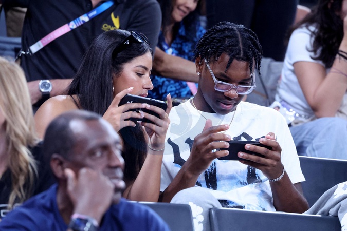 Célébrités assistent au match de basket entre les Etats-Unis et le Brésil (122-87) lors des Jeux Olympiques de Paris2024 (JO)