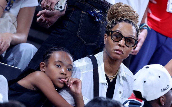 Savannah James (femme de LeBron James) et sa fille Zhuri - Les célébrités assistent à la victoire de l'équipe des USA de basket face au Brésil (122-87) lors des Jeux Olympiques de Paris2024, le 6 août 2024. © Jacovides-Perusseau / Bestimage Celebrities attend the victory of the US basketball team against Brésil (122-87) during the Paris 2024 Olympic Games, on August 6, 2024.