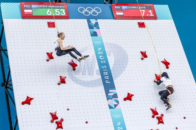 SALLSABILLAH Rajiah of Indonesia KALUCKA Aleksandra of Poland Sport Climbing Women's Speed, Final during the Olympic Games Paris 2024 on 7 August 2024 at Le Bourget Sport Climbing Venue in Le Bourget, France. © Gregory Lenormand / DPPI Media / Panoramic / Bestimage