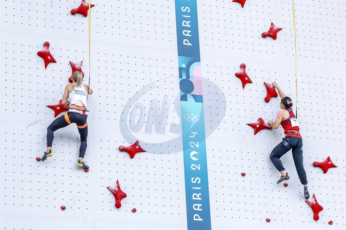 MIROSLAW Aleksandra of Poland DENG Lijuan of People's Republic of China Sport Climbing Women's Speed, Final during the Olympic Games Paris 2024 on 7 August 2024 at Le Bourget Sport Climbing Venue in Le Bourget, France. © Gregory Lenormand / DPPI Media / Panoramic / Bestimage