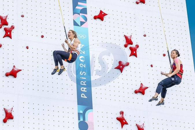 MIROSLAW Aleksandra of Poland DENG Lijuan of People's Republic of China Sport Climbing Women's Speed, Final during the Olympic Games Paris 2024 on 7 August 2024 at Le Bourget Sport Climbing Venue in Le Bourget, France. © Gregory Lenormand / DPPI Media / Panoramic / Bestimage