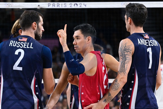 Semi finals - SHOJI Erik ( 22 - USA ) celebrate during the 2024 Olympics Games match between Poland and United States at Arena Paris Sud on August 07, 2024 in Paris, France. © Federico Pestellini / DPPI / Panoramic / Bestimage