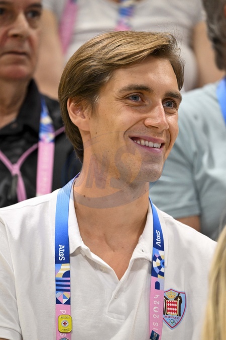 Ben-Sylvester Strautmann en tribune lors de la demi-finale de volley-ball France / Italie aux jeux olympiques Paris 2024 (JO 2024) le 7 août 2024. Les bleus remportent le match et retrouveront la Pologne en finale. © Perusseau / Jacovides / Bestimage The Princely Family of Monaco attend the volleyball semi-final at the Paris 2024 Olympic Games on august 7th 2024