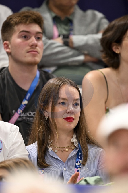 La princesse Alexandra de Hanovre en tribune lors de la demi-finale de volley-ball France / Italie aux jeux olympiques Paris 2024 (JO 2024) le 7 août 2024. Les bleus remportent le match et retrouveront la Pologne en finale. © Perusseau / Jacovides / Bestimage The Princely Family of Monaco attend the volleyball semi-final at the Paris 2024 Olympic Games on august 7th 2024
