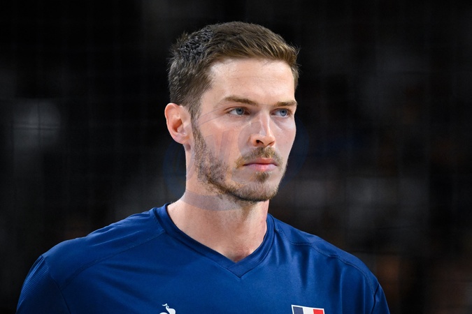 Volley-ball : Sans trembler, la France éteint l'Italie et rejoint la Pologne en finale lors des jeux olympiques Paris 2024 (JO 2024) le 7 août 2024. © Federico Pestellini / Panoramic / Bestimage Semi finals - JOUFFROY Quentin ( 25 - France ) headshot during the 2024 Olympics Games match between Italy and France at Arena Paris Sud on August 07, 2024 in Paris, France. -