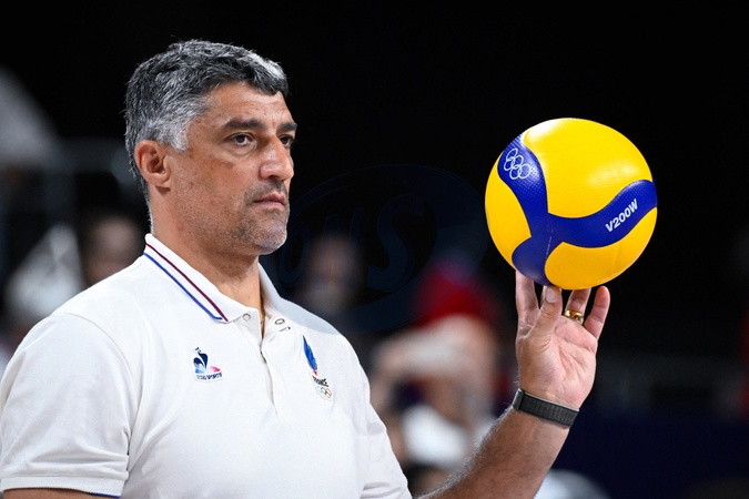Volley-ball : Sans trembler, la France éteint l'Italie et rejoint la Pologne en finale lors des jeux olympiques Paris 2024 (JO 2024) le 7 août 2024. © Federico Pestellini / Panoramic / Bestimage Semi finals - GIANI Andrea ( coach France ) during the 2024 Olympics Games match between Italy and France at Arena Paris Sud on August 07, 2024 in Paris, France. -