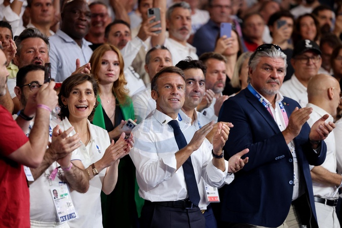 Exclusif - Prix Spécial - No Web - Amélie Oudéa-Castéra, Emmanuel Macron et David Douillet - Emmanuel Macron assiste aux épreuves de judo lors des Jeux Olympiques de Paris2024 (JO) le 2 aout 2024. © Dominique Jacovides-Pierre Perusseau/Bestimage Excluive - For Germany call for Price - Emmanuel Macron attends the judo events during the Paris2024 Olympic Games (Olympics) on August 2, 2024. © Dominique Jacovides-Pierre Perusseau/Bestimage