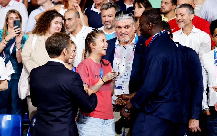 Exclusif - Prix Spécial - No Web - Emmanuel Macron assiste aux épreuves de judo lors des Jeux Olympiques de Paris2024 (JO)