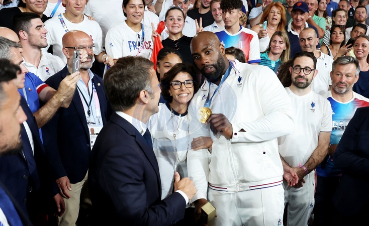 Exclusif - Prix Spécial - No Web - Rachida Dati, Emmanuel Macron et Teddy Riner - Emmanuel Macron assiste aux épreuves de judo lors des Jeux Olympiques de Paris2024 (JO) le 2 aout 2024. © Dominique Jacovides-Pierre Perusseau/Bestimage Excluive - For Germany call for Price - Emmanuel Macron attends the judo events during the Paris2024 Olympic Games (Olympics) on August 2, 2024. © Dominique Jacovides-Pierre Perusseau/Bestimage