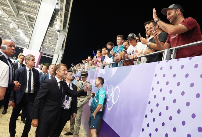 Exclusif - Prix Spécial - No Web - Emmanuel Macron assiste aux épreuves de BMX lors des Jeux Olympiques de Paris2024 (JO)